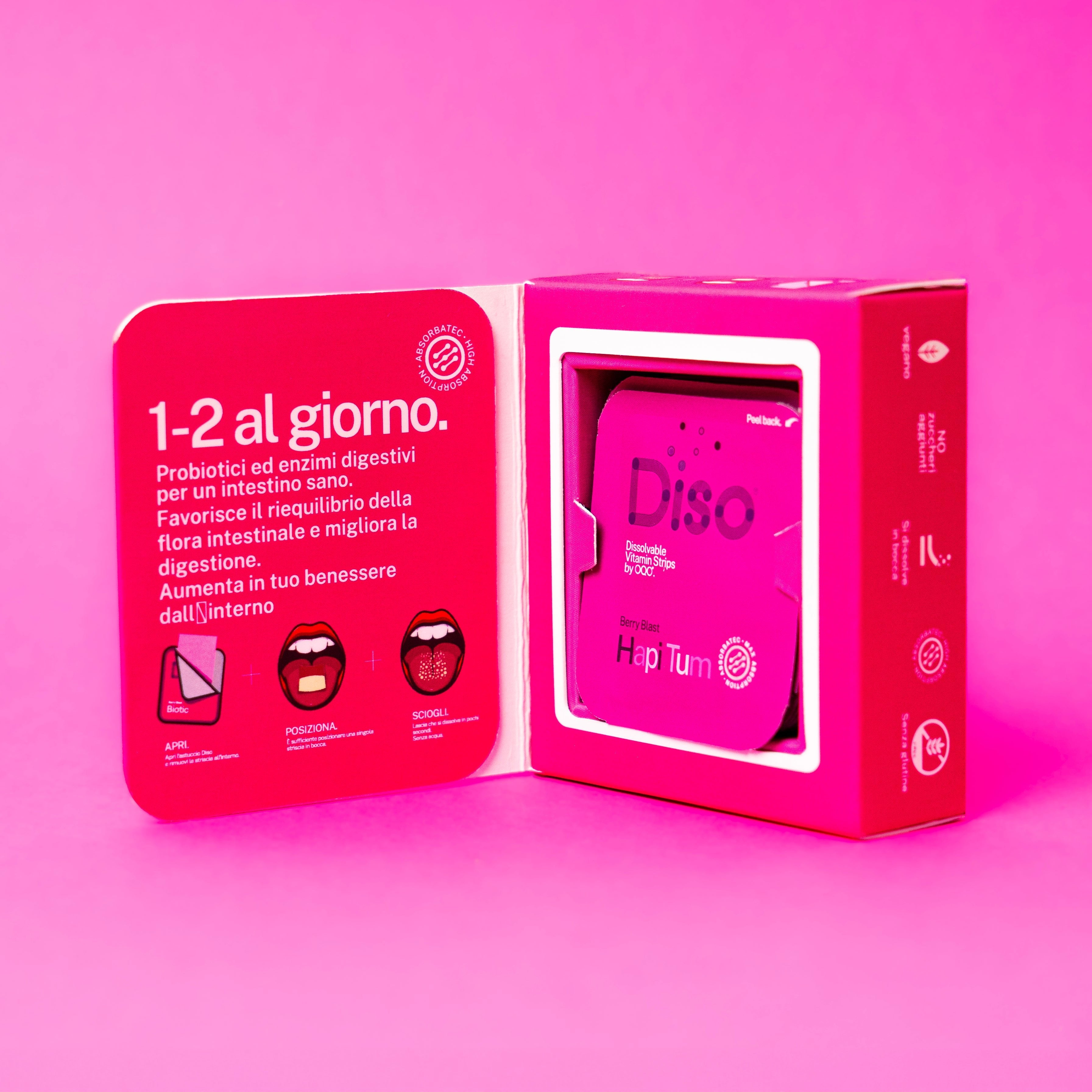 Le Diso Strips sono pensate per semplificare la tua routine quotidiana. Si sciolgono in pochi secondi, senza bisogno di acqua, per un benessere immediato e ovunque.
